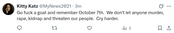 Looks like Mossad is running out of sock puppet accounts. The usual troll reply's are now all coming from fresh accounts with less than 10 followers. Probably AI bots.