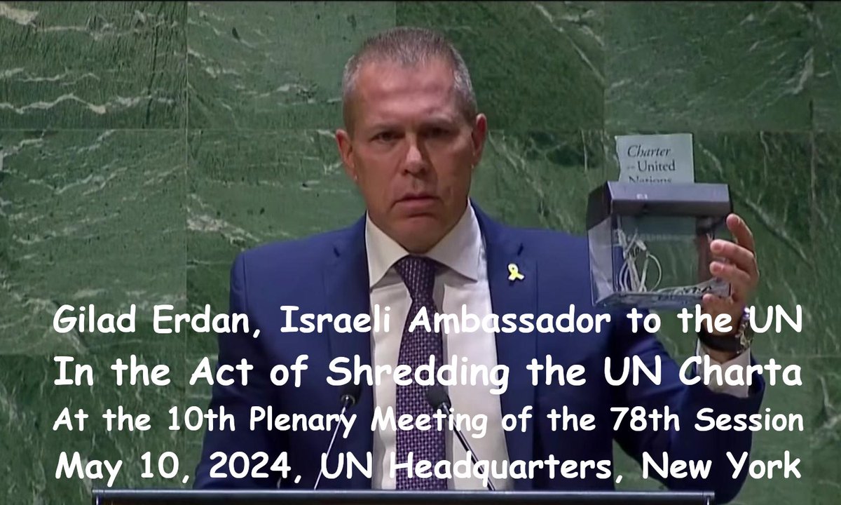 Today, 80 years ago, on June 26, 2025, the UN Charter was signed by 50 nations. It passed away on May 10, 2024 when Israel's Ambassador Gilad Erdan shredded it in front of the UN General Assembly. Rest in Peace International Law.