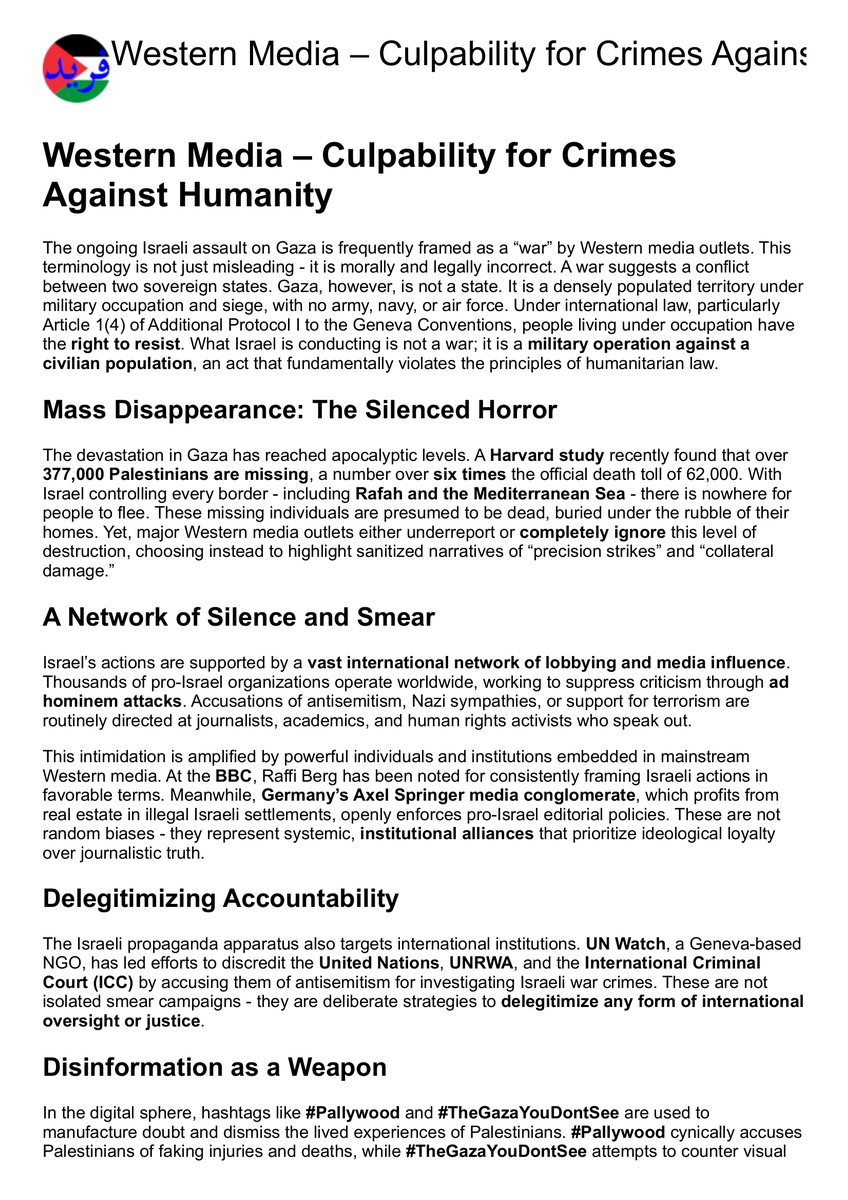 Essay: Western Media โ€“ Culpability for Crimes Against Humanity 24 Languages, Audio Podcasts, No Ads, No Cookies https://farid.ps/articles/western_media_culpability_for_crimes_against_humanity