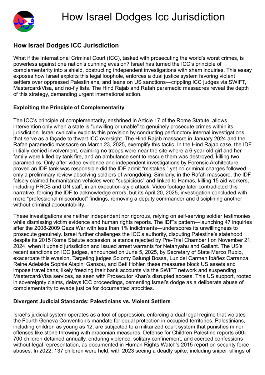 Essay: How Israel Dodges ICC Jurisdiction 24 Languages, Audio Podcasts, No Ads, No Cookies https://farid.ps/articles/how_israel_dodges_icc_jurisdiction