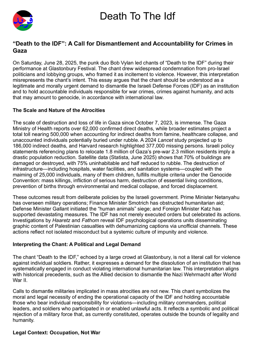 โ€œDeath to the IDFโ€: A Call for Dismantlement and Accountability for Crimes in Gaza 24 Languages, Audio Podcasts, No Ads https://farid.ps/articles/death_to_the_idf