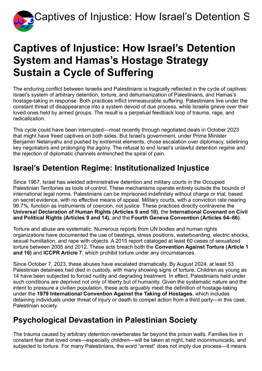 Captives of Injustice: How Israelโ€™s Detention System and Hamasโ€™s Hostage Strategy Sustain a Cycle of Suffering https://farid.ps/articles/breaking_the_cycle_of_captives_and_violence 24 Languages, Audio Podcasts, No Ads