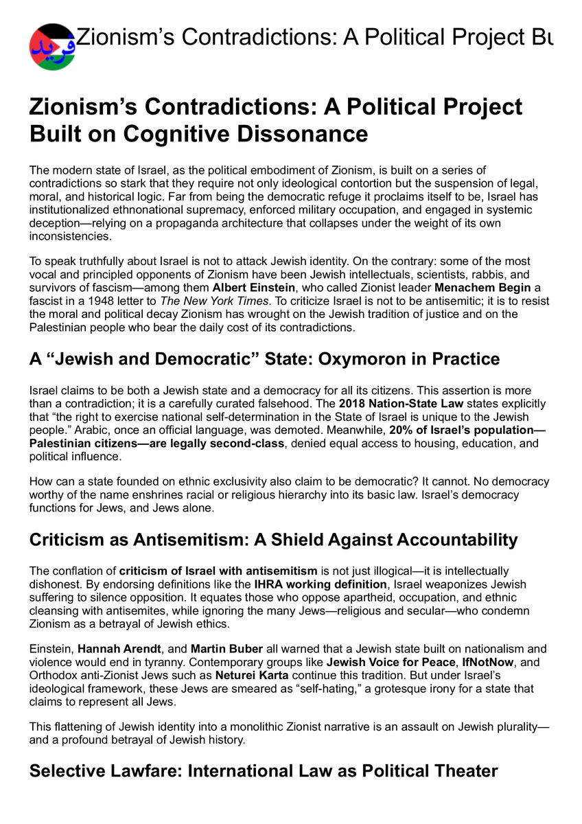 Zionismโ€™s Contradictions: A Political Project Built on Cognitive Dissonance https://x.com/R34lB0rg/status/1940095557025837390