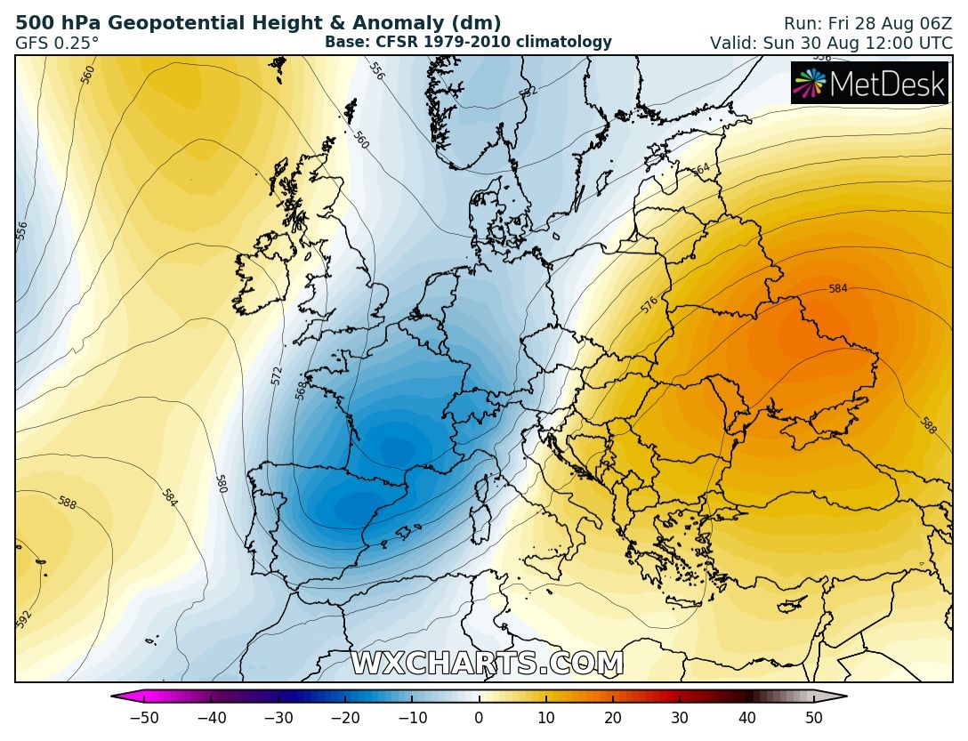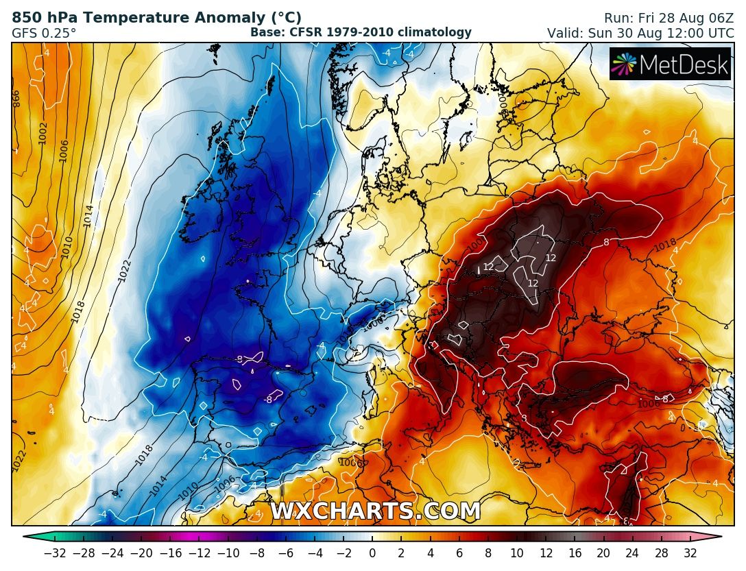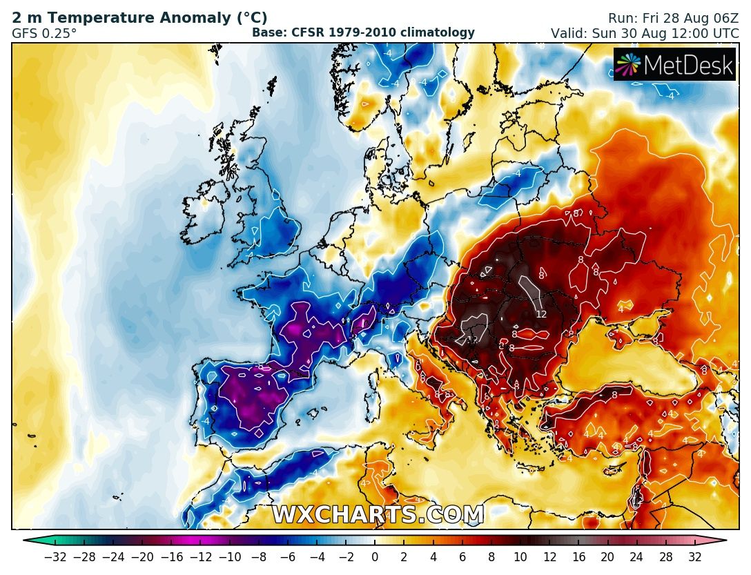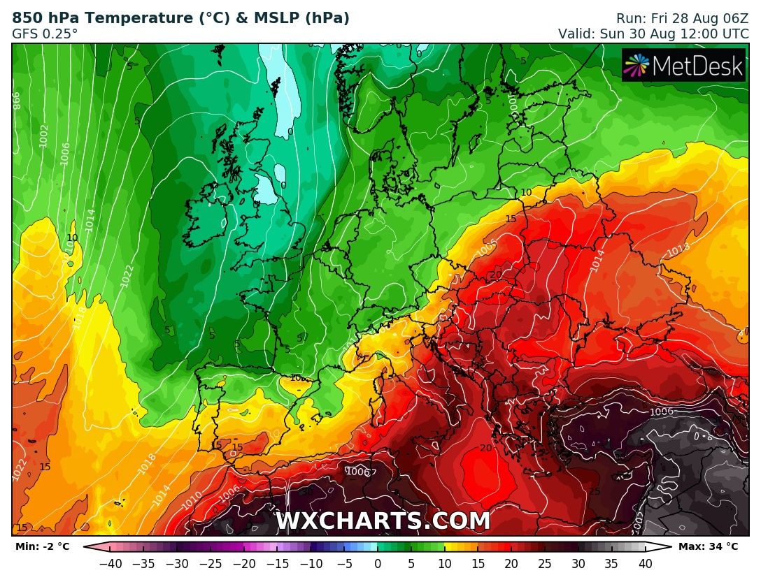 Heisse Luft aus Afrika strömt über Osteuropa in Richtung Sibirien.