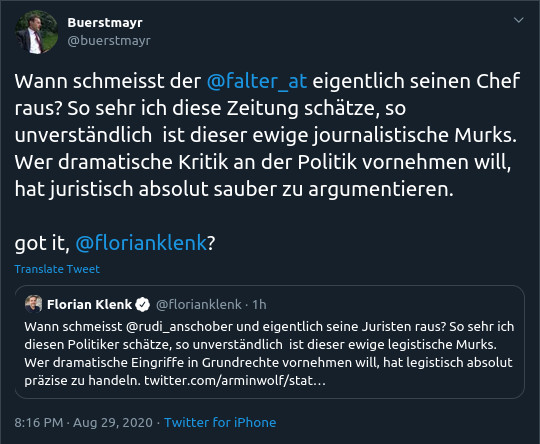 Oh wow, die Grünen reiten gegen die freie Presse und merken dabei nichtmal, dass Florian Klenk den grünen Minister mit seinem Tweet in Schutz nehmen wollte.