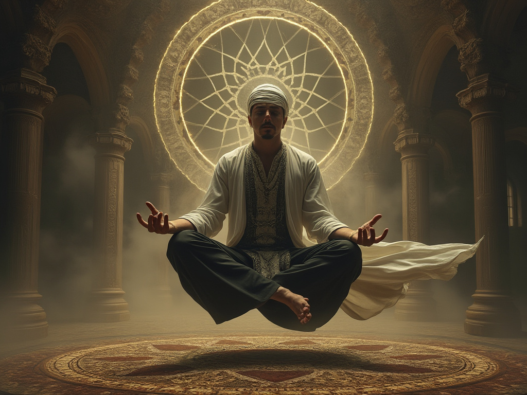 كان في يوم من الأيام، صوفي مجهول اسمه يسكن في قرية صغيرة بين الجبال. كانت حياته مكرسة للعبادة والتصوف، وقد ركز على تزكية نفسه ووصوله إلى معرفة الله. يقال إن هذا الصوفي كان يمتلك القدرة على الطيران عندما كان يصل إلى أعماق التأمل والذكر.