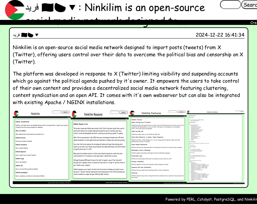 Ninkilim is an open-source social media network designed to import X posts (tweets) from Twitter, offering users control over their data in contrast to the perceived bias and censorship on Twitter, which has evolved into a platform promoting certain agendas since its creation in 2006.