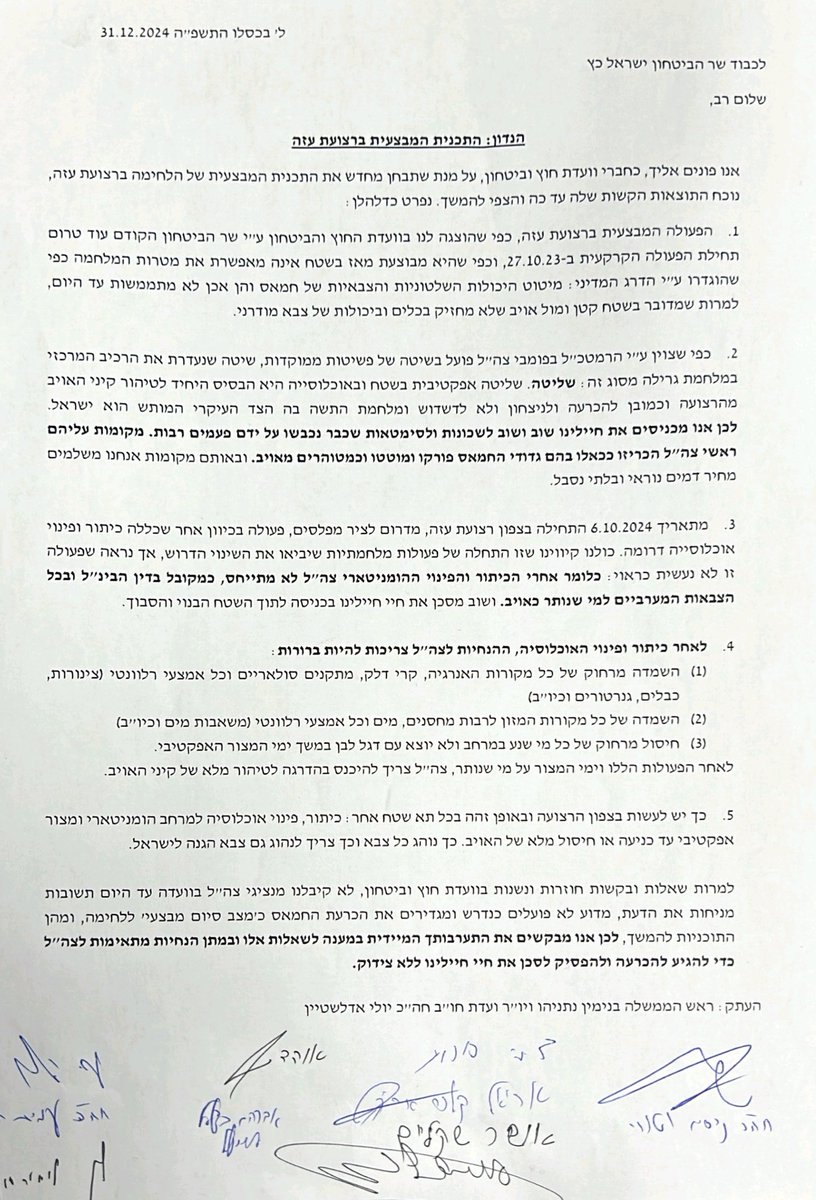 - **Explicit Demand for Destruction**: The letter signed by eight members of the Israeli Knesset, as shown in the document and its translation, explicitly calls for the destruction of essential resources like energy, food, and water in Gaza. This demand, when viewed through the lens of international law, particularly the Genocide Convention, which defines genocide as acts committed with intent to destroy, in whole or in part, a national, ethnical, racial, or religious group, suggests a deliberate infliction of conditions of life calculated to bring about the physical destruction of the Palestinian population in Gaza.