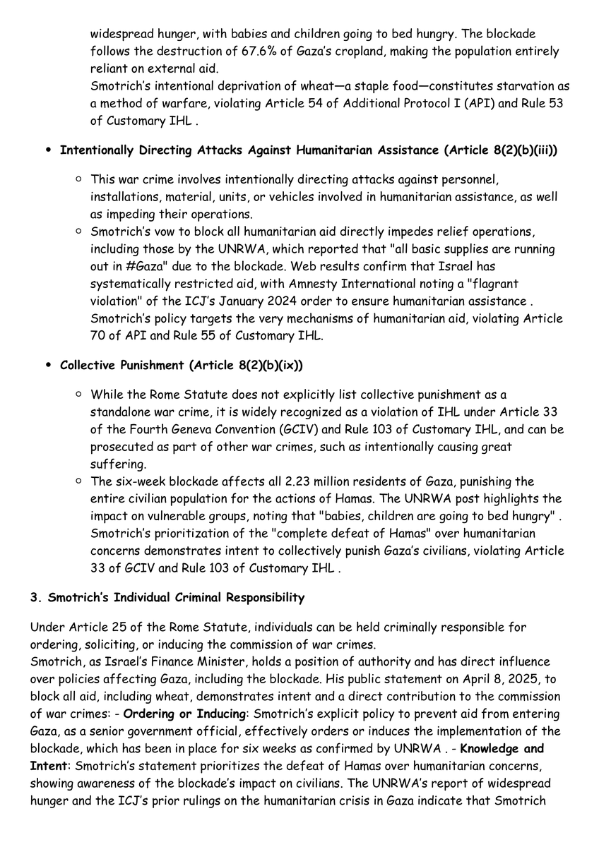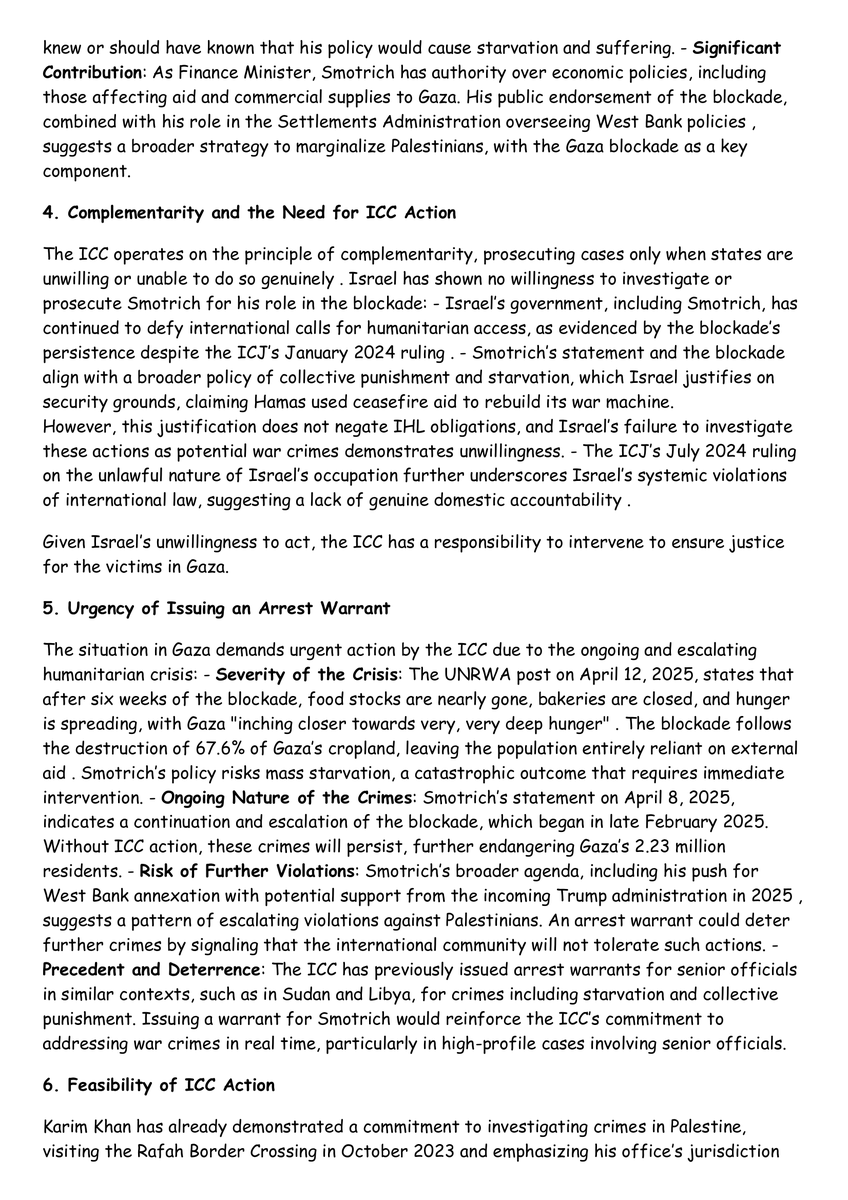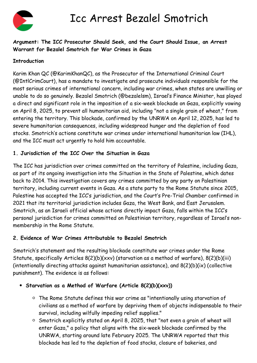 Dear @KarimKhanQC, Bezalel Smotrich's siege on #Gaza is a crime under international humanitarian law and demands action from the @IntlCrimCourt.